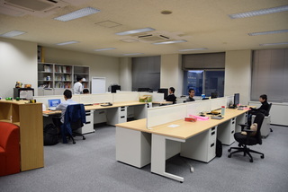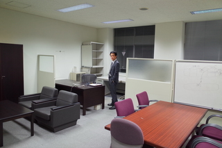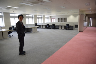 | All carpets in our lab room were replaced overall. The part corresponding to the corridor becomes red, which is the symbol color of NAIST Information Science, so it became like "Red Carpet". There is less furniture yet, so a wide space spreads out. |