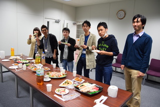 | New five members were assigned to our lab. They are the first students! We have a simple welcome party. |