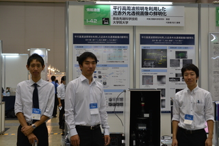 | We have introduced ``Descattering of Transmissive Observation using Parallel High-frequency Illumination'' on Innovation Japan 2014 at Tokyo Big sight. We were happy that many visitors were interested in our visual system. |