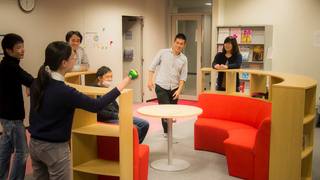 | The circular sofa was installed at near the entrance to discuss, chat, think, and rest. We call this area as `creative circle'. |
