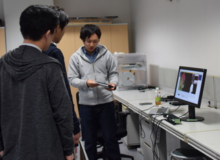 | M1 students also introduced their research. Takanori demonstrated the analysis of scattering using ToF camera. |