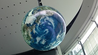 | Geo Cosmos, the symbol of Miraikan, is powerful. If we lie on the sofa and look at it, our mind will rest. |