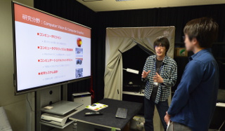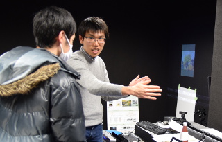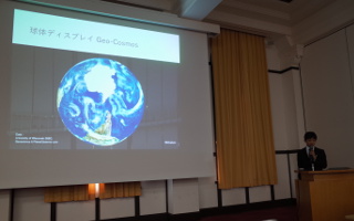 | Hiromu also presented his research on floating expression for spherical display. This is the result of joint research with Mitsubishi Electric and Miraikan. |