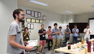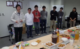 | Pierre, who came to our lab for internship, will finish his work after several days. So, we held a farewell party. His research on light-field camera seems to make a good progress towards the end of his internship. |