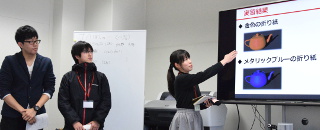 | In the spring seminar at NAIST, three cheerful students experienced our lecture, ``Let's make a photorealistic computer graphics: a method for photorealistic computer graphics via measurement of optical characteristics''. |