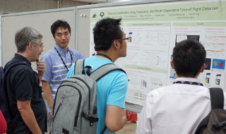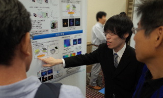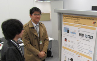 | Tsuyoshi presented a research at poster session, held on the second day of the symposium. Prof. Tanaka also presentated a research on material estimations using a ToF camera. |