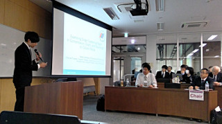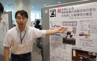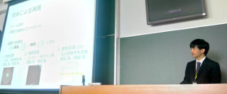 | Dr. Aoto introduced his research on viscoelasticity measurement using ultrasonic waves at the Shitsukan project meeting held at Tohoku university. |