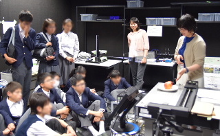 | About 40 students visited NAIST from junior high school attached to the faculty of education, Okayama university. We introduced computer vision and gave a demonstration which estimates object materials using a camera. |