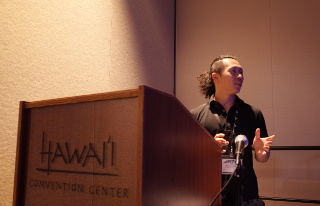 | Prof. Mukaigawa, Prof. Tanaka, Dr. Aoto, and Tsuyoshi gave presentations in CVPR2017 held at Honolulu in Hawaii. Tsuyoshi gave an oral presentation because his research on spectral image measurement system was invited to the workshop CCD 2017. | |