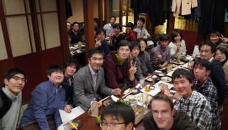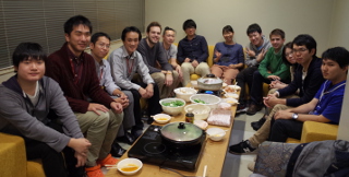 | Sebastien and Lawrence from Universite Catholique de Louvain in Belgium will stay in our lab for a week. We held a Sukiyaki party as a welcome party. |