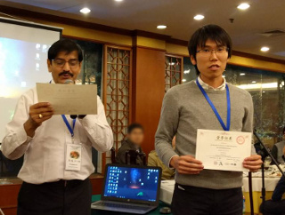 | Mr. Asada, who is one of the first generation members of our lab, received the best paper award for his research with the title of ``Simultaneous reproduction of reflectance and transmittance for ink paintings''. Since Mr. Asada, Prof. Kubo, and Prof. Funatomi could not attend the award ceremony, Prof. Mukaigawa attended. | |
