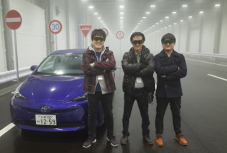 | Takeshi, Daisuke, and Prof. Mukaigawa went to the Japan Automobile Research Institute at Tsukuba for experiment. The purpose of this experiment is descattering in the artificial rain and fog. They do not wear sunglasses but protective glasses to protect their eyes from a powerful near-infrared laser. |
