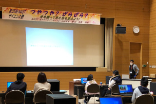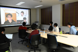 | Mr. Mihara, Mr. Ono, and Mr. Ueda, who are graduates working for SONY, introduced us their works. They visited the laboratory every year, but this year they introduced online. However, we were able to know how they were working well. |