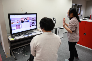| We have set up an online system that allows us to connect at any time with a large monitor, while a tablet terminal was used last spring. We can feel free to know the state of the laboratory even at home. |