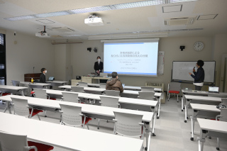 | This year, all the master thesis presentations from our lab were held on the first day, and it ended all at once. Since we were able to participate online, there were only a few people in the room, which was quite different from the usual year. Good work, M2 students. |