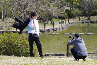 | The graduation ceremony of this year was reduced, and each laboratory handed out their graduation certificates. However, as usual, the photos for the homepage were taken by Prof. Mukaigawa himself. |