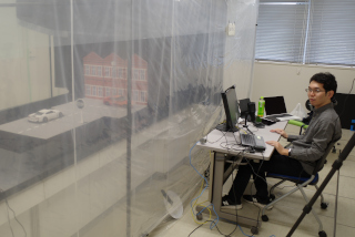 | Dr. Kushida gave an invited talk on ToF measurement in fog at the Technical Group on Information Sensing Technologies of the Institute of Image Information and Television Engineers. As usual, the presentation was online, but we were able to show the effect in real time by demonstrating from the fog experimental room where artificial fog can be actually generated. |