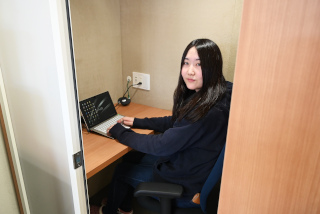 | Recently, conference presentations and job hunting interviews have become online, so a private room where we can talk without worrying about the surroundings has been introduced. It's small but comfortable. |