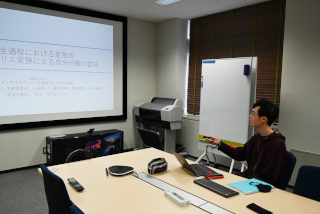 | Tomoki presented his research results on spectral decomposition of geometric transformation fields at the CGVI workshop held at Kumamoto University. The presentation was realized by local participation instead of online. |
