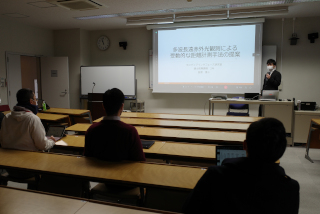| There were 4 master's thesis presentations the day before yesterday and 4 presentations today. All of the M2 students were able to finish the presentation. Prof. Tanaka of Ritsumeikan University also came for the review. |