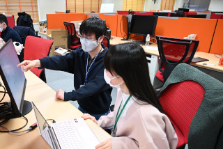 | A spring seminar was held, and participants challenged the task of "Let's sharpen fog images by deep learning!". Three people from Tokyo, Gunma, and Oita participated online, but a participant from Hyogo was able to participate face-to-face. |
