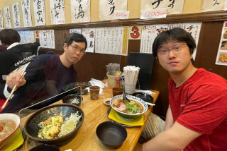 | Mr. Mikami, who graduated in 2019 and is currently working for Yahoo, went to Mario Ryu ramen shop with Dr. Kushida and Prof. Kitano. There are many famous ramen shops in Nara. |