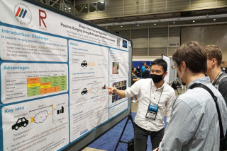 | Mr. Nagase, who graduated in 2021 and is currently working for NEC, attended the international conference CVPR2022 held in New Orleans, USA with Dr. Kushida. He presented his master's thesis on distance measurement using a far-infrared camera. |