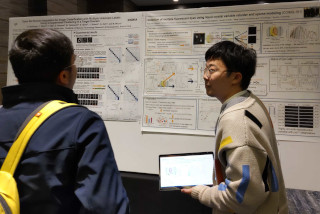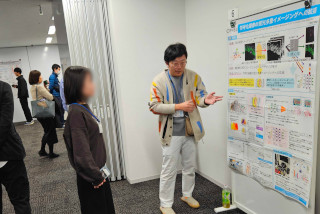 | Kazuma presented his research at the Young Researchers Poster Session of CREST Bio-DX. Despite the environment being filled with specialized terminology from the life sciences field, he made an effort to explain his research clearly and effectively to ensure his ideas were well communicated. |