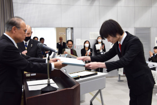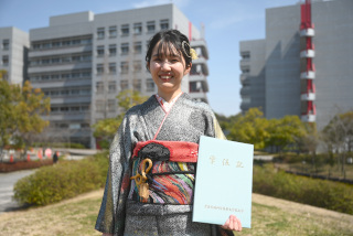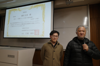 | Ippei, who will begin his doctoral course in April, received the `NAIST Academic Excellence Award', which is given to those who have particularly excellent academic performance and outstanding research achievements. |