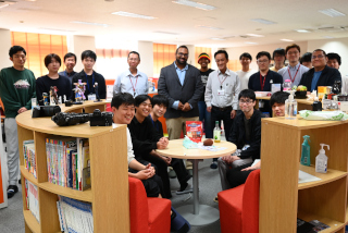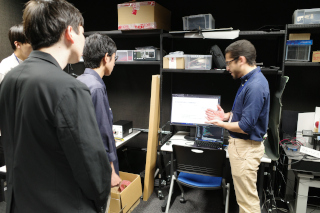 | Professor Jayasuriya from Arizona State University, with whom we have been conducting collaborative research for a long time, visited our laboratory. After giving a lecture on acoustic cameras, he had individual discussions with our laboratory members. |