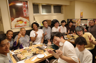 | Suzan's family traveled from Tanzania to attend her degree conferral ceremony, so we held a farewell party with okonomiyaki together. |