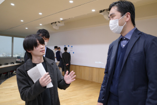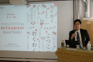 | Mr. Asada, one of the first-generation students from our lab and now working at Mitsubishi Electric, introduced his company at the NAIST Green Economy Session and answered questions from students in a lively discussion. |