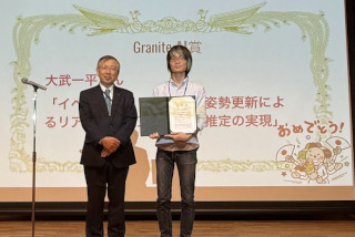 | Prof. Fujimura received the Encouragement Award at the CVIM workshop held in Hiroshima. This is a new challenge to introduce a priori knowledge of the scene into NeRF for generating free viewpoint images. |
