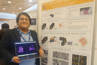 | Diego presented his research on an event-based camera simulator at the international conference VISAPP 2025 in Portugal. Since his work combined new technologies, NeRF and event-based cameras, many people came to see his poster presentation. |