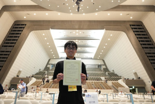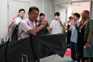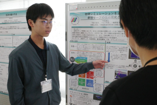 | The research presentation event for NAIST STELLA, an educational program for high school students, was held. Naohiro presented his work on a ping-pong serve simulation using physics-based CG and received the Excellent Poster Award. His efforts, along with the support from his mentors Takumi and Daisuke, truly paid off. |