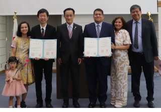 | The degree conferment ceremony was held. Yohanssen received his doctoral degree, and Diego received his master's degree. Both of their families attended the ceremony. |
