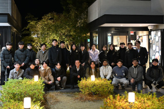 | After a discussion on our recent research topics, they had dinner at a nearby home-style restaurant. Although it was a cold night, they enjoyed eating in a Japanese-style kotatsu set outdoors. |