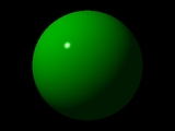 反射特性を変えてレンダリング:reflection.pov #include "colors.inc" camera{ location <0,0,6> look_at <0,0,0> angle 30 } light_source{ <5,5,5> color White} object{ sphere { <0,0,0>, 1} pigment{ color Green} // finishで反射特性を制御する finish { specular 0.5 roughness 0.1} // finish { specular 0.7 roughness 0.01} // finish { specular 1.0 roughness 0.001} }
