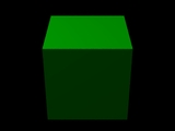 標準インクルードファイルを使えば,様々な形状を使うことができる. 以下の例では,"shapes.inc" と "shapes2.inc"をインクルードすることで, Cube(立方体), Cone_Y(Y軸方向の円錐),Dodecahedron(正十二面体)を 使っている. なお,以下の例では,"colors.inc"もインクルードすることで, WhiteやGreenといった名称で色を定義するように変更している. 「//」はC++と同様にコメントの記号であり, 立方体だけをレンダリングするようにしている. 図3に示すように,円錐や正十二面体など,様々な形状をレンダリングできる.