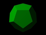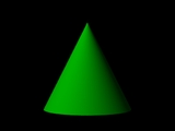 様々な形状でレンダリング:shape.pov #include "colors.inc" #include "shapes.inc" #include "shapes2.inc" camera{ location <0,0,6> look_at <0,0,0> angle 30 } light_source{ <5,5,5> color White} object{ // 立方体の場合 Cube rotate <30,0,0> scale 0.7 // 円錐の場合 // Cone_Y scale 0.9 // 正十二面体の場合(shapes2.incが必要) // Dodecahedron rotate <30,0,0> scale 0.8 pigment{ color Green} }